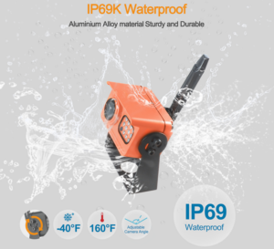 Additionally a camera with red LED running light is also available which can be mounted on the sides or rear of a truck body, caravan or towed trailer. All that is required is the availability of 12V power. WC-R2