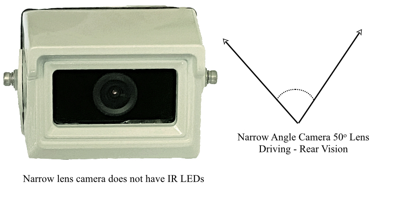 The CH-HPC2-1MW50 uses a 50o lens which provides a better view of traffic on the road behind or further away and as such is recommended when the main purpose of the camera is to be able to see what is behind the van or vehicle while driving.